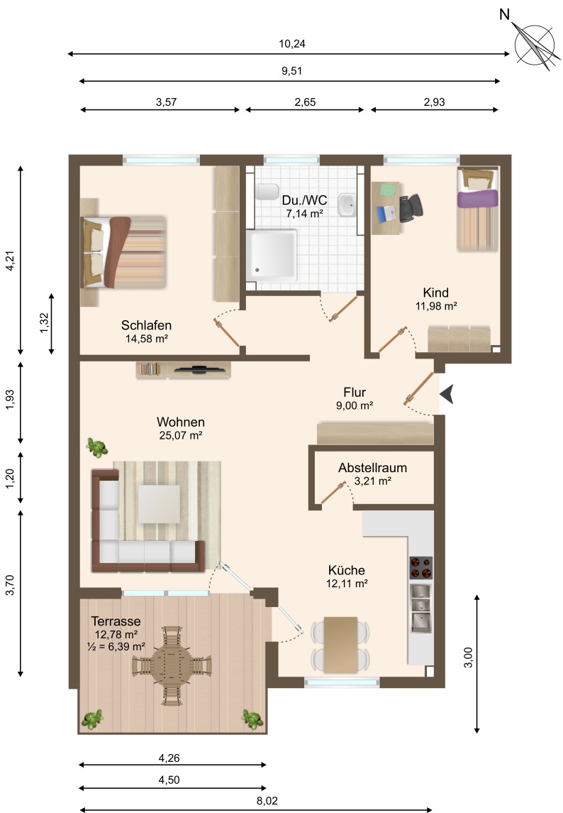 Ein Abstellraum in der Wohnung sorgt zusätzlich für Stauraum und Ordnung.