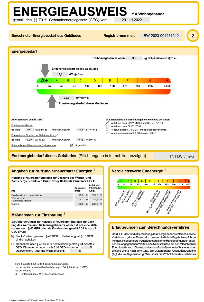 - Wesentlicher Energieträger: Wärmepumpe